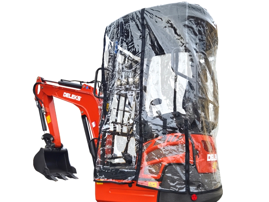Мягкая кабина на миниэкскаватор Deleks - удобная практичность от дождя и ветра. Тент-Дождевик для мини-экскаватора.