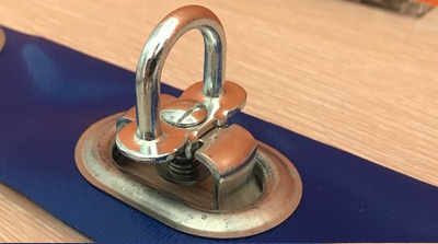 - Скоба ремень – предназначена для крепления мягких окон к конкретной поверхности. Скобы устанавливаются в материал основной конструкции. Сквозь люверсы окно насаживается на скобы. Ремешки, просунутые через скобы, предназначены для натяжения штор ПВХ.